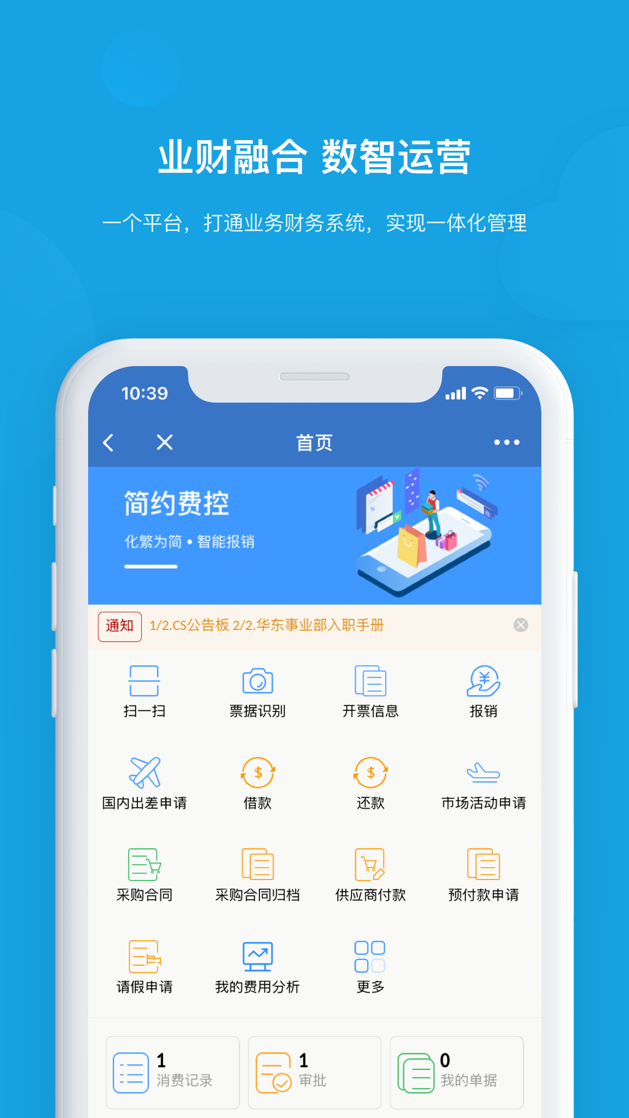专注企业财务智能和业财一体化服务,通过企业微信版云简业财可实现:【移动报销】拍照一键识别各类发票,自动查重验真;【商旅管理】对接各类商旅平台,支持对公月结;【采购付款】从合同到付款验收,单单关联;【统计分析】多维报表分析费用效益